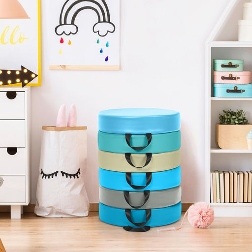 6-Piece Foam Floor Seat Cushions | Round Kids Cushion Set with Waterproof Cover COSTWAY